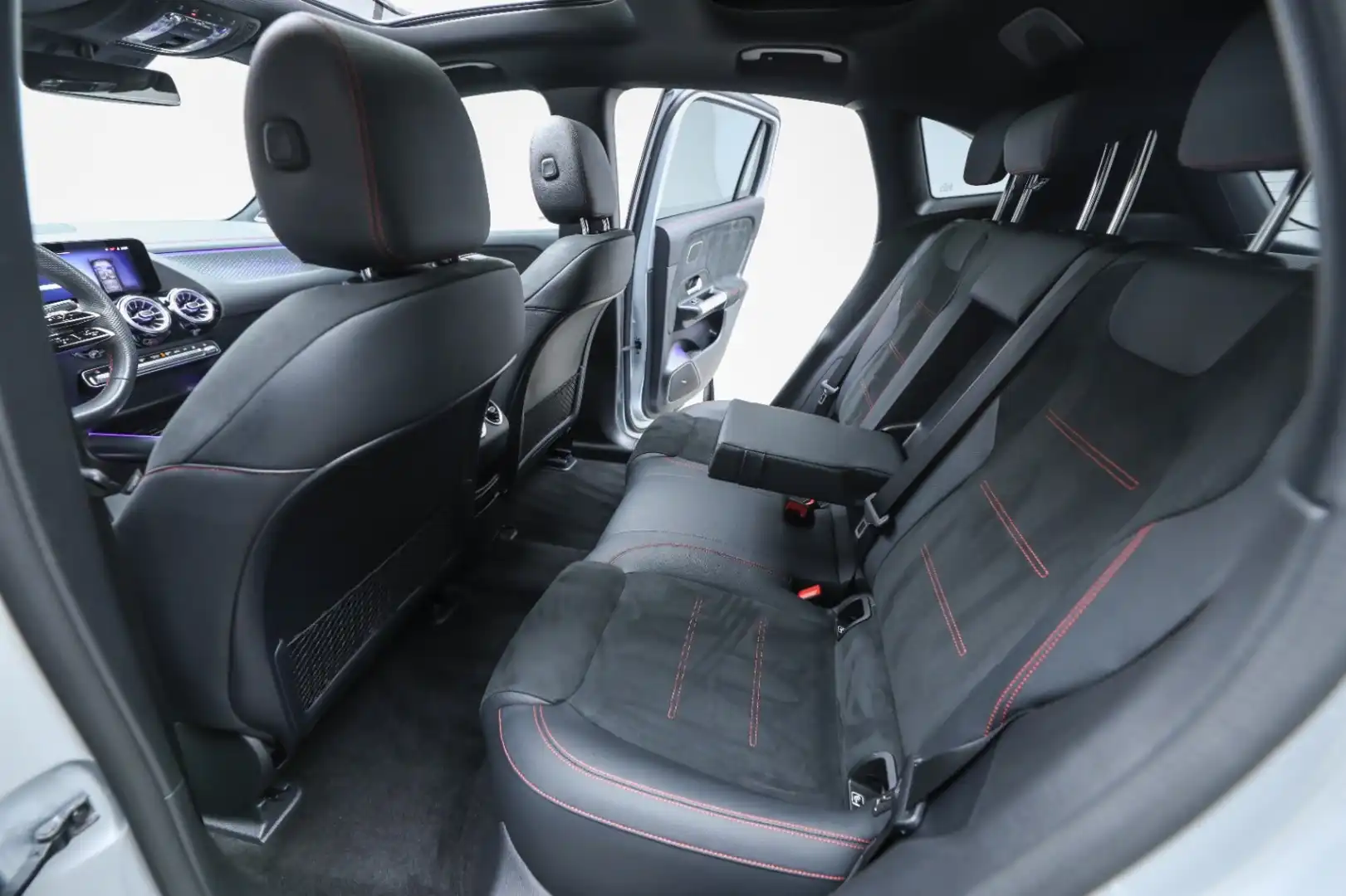 Design: High-tech sølv metallak, AMG Designlinje, 18" AMG letmetalfælge i 5-eget design, ARTICO kunstlæder/MICROCUT mikrofiber sort, Taghimmel sort, Fladbundet multifunktionssportsrat i nappalæder, AMG bundmåtter, Interiørliste med stjernemønster belyst, Interiørlister med belysning, Varmeisolerende og mørktonede ruder, Ambiente belysning (64 farver), Tagræling i poleret aluminium, Projektion af logo, Belyste trinlister med logo,