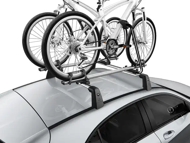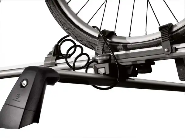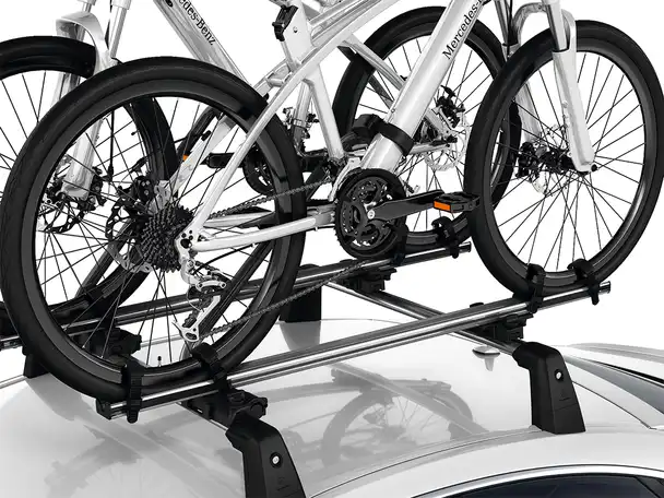 Transporter nemt og sikker dine cykler på taget af din Mercedes-Benz. Cykelholderen er til forskellige typer cykler såsom; Trekking eller landevejscykler. Letvægtscykelholderen er konstrueret i en blanding af aluminium og stål hvilket bringer vægten helt ned til 2,5 kg. Cykler kan nemt fastgøres på jordniveau, før stativet er monteret på bilen. Støtterammen kan foldes ned, når den ikke er i brug, for at reducere vindmodstand og støj. Cykelholder leveres enkeltvis, mens der kan være tre cykelholdere på taget af din Mercedes-Benz.