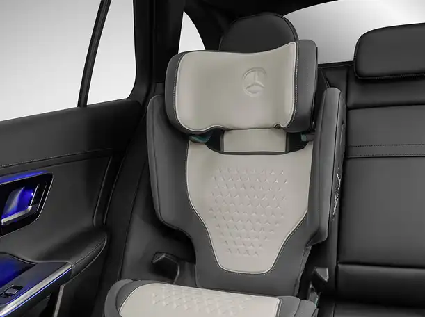 3,5-12 år / 15-36 kg. Vaskbart betræk. ISOFIX. ECE R 129 standard. Specielt testet med Mercedes-Benz køretøjer. 5-punktslele.