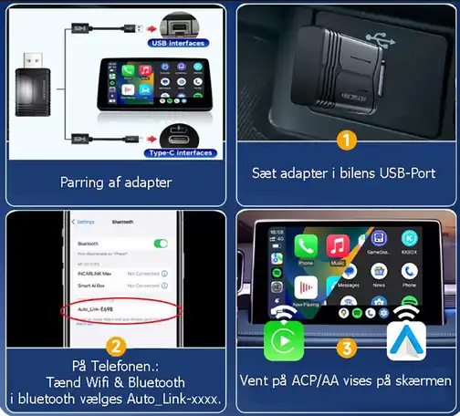 Gør dit Apple CarPlay trådløst og slip for de irriterende kabler. Med denne adapter slipper du for at tilslutte din telefon med kabel hver gang du ønsker at benytte dit Apple CarPlay. Når enheden er parret med din telefon opretter denne automatisk forbindelse til telefonen, næste gang du starter di...